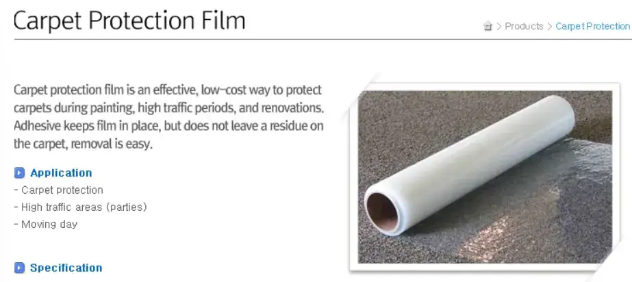 J Tech Co. Ltd is one of the prominent Korean manufacturers of Sticky Mats, Sticky Roller, PE Protective Film, Carpet Protection Film and PVC Tape.