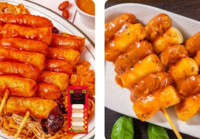 Original Tteokbokki (Instant spicy rice cake), Sotteok Sotteok (Rice cake & sausage skewers), Tornado Hot Dog / Sso Pang (Sausage wrapped in bread), Sweet Potato Hot Dog, Sausage in Pastry Hot Dog, Doenjang Sauce, Cheese Seasoning, Sausages, Dumplings etc.